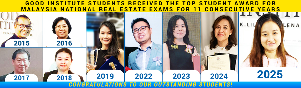 Good Institute is the top provider for the real estate license course covering all the 12 subjects above and Good Institute students have been the top scorer in Malaysia for the past 8 years. Besides, great quality material and lecturers which enable you to be the top scorer, Good Institute students have frequently given feedback that the knowledge learnt in class have been very useful for providing them with the extra edge compared to others when dealing with clients as they are able to provide added value. Busy working professionals also treasure the simplicity of the way our notes are structured so that they can study easily for the exams.